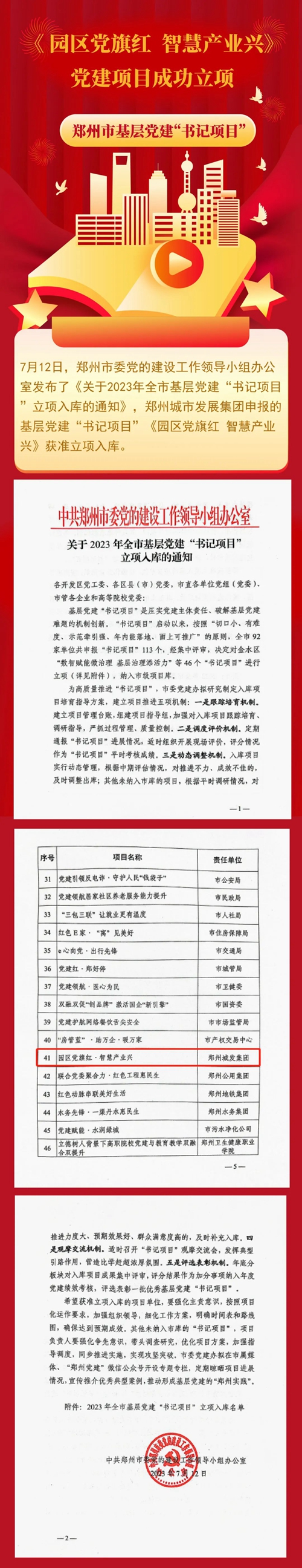 《園區(qū)黨旗紅 智慧產(chǎn)業(yè)興》黨建項(xiàng)目成功立項(xiàng)鄭州市基層黨建“書(shū)記項(xiàng)目”