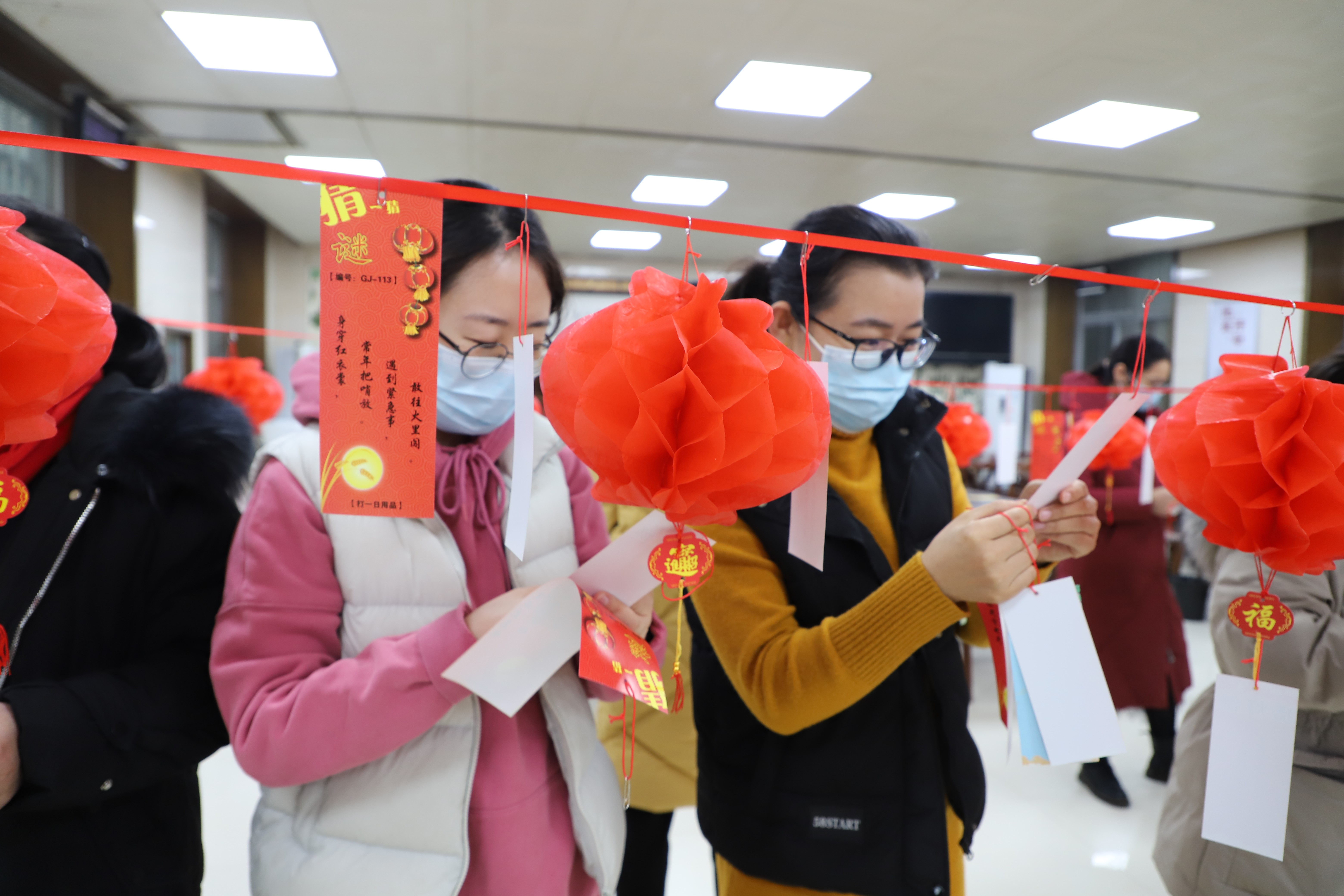 食堂內(nèi)部,工作人員在充分做好防疫工作的基礎(chǔ)上,提前將二百余條顏色不一的謎語條高高掛起。謎語有猜成語的,有猜動物花鳥的,有猜歇后語的,有猜日常用品的,生動而活潑、面廣而量大。在益智填趣、娛樂生活的同時,更以這種傳統(tǒng)高雅的文藝形式展示了一方水土歷史、人文、民俗之特色與魅力,集趣味性、知識性于一體,讓大家樂中有學(xué),共同領(lǐng)略祖國語言的無窮奧妙。活動現(xiàn)場,還為大家精心準(zhǔn)備了春節(jié)相關(guān)的禮品,極大激起了參與職工的興趣。