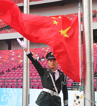 伴隨著慷慨激昂的義勇軍進(jìn)行曲,五星紅旗冉冉升起,鄭州奧體中心全體員工莊嚴(yán)的向國旗行注目禮,以最崇高的方式表達(dá)對(duì)祖國母親的敬愛之情。
