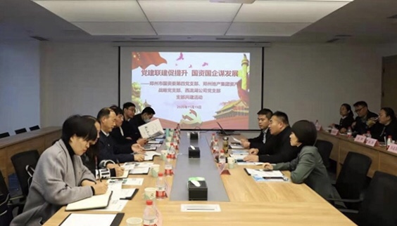 為深入學(xué)習(xí)貫徹黨的十九屆五中全會(huì)精神,進(jìn)一步促進(jìn)國資國企改革發(fā)展,不斷探索黨建與企業(yè)科學(xué)發(fā)展的有機(jī)融合,11月19日下午,鄭州市國資委第四黨支部與鄭州地產(chǎn)集團(tuán)資產(chǎn)戰(zhàn)略黨支部、西流湖公司黨支部聯(lián)合開展支部共建活動(dòng)。鄭州市國資委黨委委員、副主任劉學(xué)銀,副調(diào)研員范桂田,第四黨支部書記、財(cái)務(wù)監(jiān)管處處長范競(jìng),產(chǎn)權(quán)管理處處長常艷麗,鄭州地產(chǎn)集團(tuán)資產(chǎn)戰(zhàn)略黨支部書記、資產(chǎn)運(yùn)營部部長王樂琪,西流湖公司黨支部書記、董事長、總經(jīng)理吉獻(xiàn)亮,副總經(jīng)理李金光參加活動(dòng)。
