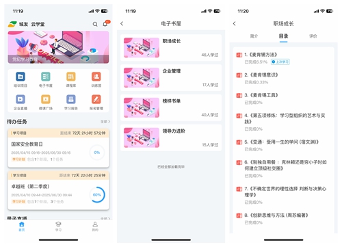 在量見*云平臺搭建“電子書屋”,結合員工學習地圖的要求,設置“職場成長”“領導力進階”“企業(yè)管理”等主題閱讀專區(qū),共計70余本電子書籍,員工在“量見*云”平臺閱讀,積極撰寫讀書感悟、評論等,通過完善閱讀服務資源,為員工隨時隨地開展閱讀創(chuàng)造便利條件。