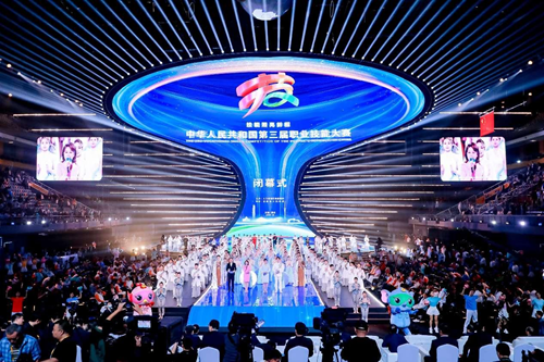 第三屆全國技能大賽是我國賽事規(guī)格最高、競賽項目最多、參賽規(guī)模最大、影響范圍最廣的綜合性國家職業(yè)技能賽事。閉幕式上,共為本次大賽106個競賽項目(66個世界技能大賽選拔項目和40個國賽精選項目)的獲獎選手頒發(fā)獎章。激動人心的頒獎和創(chuàng)意十足的演出結束后,大賽組委會主任、人力資源社會保障部部長王曉萍宣布大賽閉幕。大賽組委會主任、河南省省長王凱致閉幕詞。承辦第四屆全國技能大賽的浙江省省長劉捷承接會旗。世界技能組織首席執(zhí)行官大衛(wèi)·霍伊發(fā)表視頻致辭。