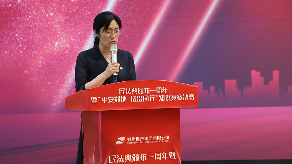 為深入貫徹落實習(xí)近平總書記關(guān)于民法典學(xué)習(xí)宣傳的重要講話精神及市國資委2021年度普法依法治理工作要點相關(guān)要求,引導(dǎo)全體職工深入學(xué)習(xí)民法典及相關(guān)法律知識,提升職工干部學(xué)法懂法守法用法的能力,5月28日,在民法典頒布一周年之際,鄭州地產(chǎn)集團(tuán)主辦、西流湖公司和鄭地發(fā)展公司承辦的“平安鄭地 法治同行”知識競賽總決賽在金岱科創(chuàng)城商務(wù)服務(wù)中心舉辦,在市屬國企系統(tǒng)掀起學(xué)法普法的熱潮。鄭州市國資委黨委委員、副主任孟慶平、信訪處處長夏建新、法規(guī)處副處長張珂應(yīng)邀出席本次活動。