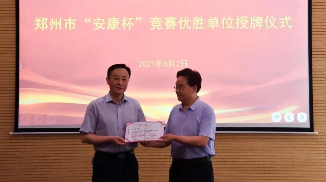 6月2日下午,鄭州市總工會機關工會主任王銀倉、市總工會勞動和經濟部部長宋慧分別向集團兩家獲獎公司頒發(fā)鄭州市“安康杯”競賽優(yōu)勝單位獎牌。