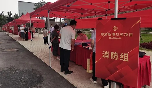鄭地新港華苑項目于2021年8月26日下午,順利完成由鄭州市城建局牽頭組織,人防、消防、質監(jiān)、規(guī)劃等部門共同參與的聯(lián)合驗收,是疫情期間第一個通過聯(lián)合驗收的建設項目。為嚴格落實鄭州市新冠肺炎疫情的防控要求,新港華苑項目部提前制定了周密的疫情防控方案,采取了妥善的疫情防控措施,有序組織進入院區(qū)人員掃健康碼、檢查48小時核酸檢測結果、測量體溫、酒精消殺、分發(fā)防疫包等。經(jīng)過啟動儀式、書面匯報、現(xiàn)場巡查、聯(lián)動測試等環(huán)節(jié),鄭地新港華苑項目順利完成聯(lián)合驗收工作。