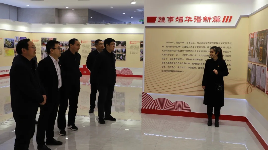 第二站,指導(dǎo)組一行參觀了金岱科創(chuàng)城商務(wù)服務(wù)中心,詳細(xì)了解了金岱科創(chuàng)城核心板塊、商代王城遺址核心板塊及小李莊火車站核心板塊的規(guī)劃建設(shè)情況。隨后實地觀摩了西流湖公司黨支部黨史學(xué)習(xí)教育“我為群眾辦實事”主題展,對西流湖公司黨支部助推金岱迭代升級、全力打通“斷頭路”、打造精品安置房、積極投身防汛搶險疫情防控一線等踐行“八心”服務(wù)、為群眾辦實事好事的一系列工作舉措給予了高度評價和充分肯定。